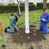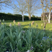 Soins des arbres fruitiers, production de tulipes de pleine terre, production horticoles sous abri, construction de la cabane à moutons d’eco paturage.