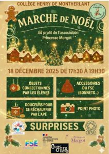 Cette année, notre collège a le plaisir d’organiser son premier Marché de Noël, un moment chaleureux placé sous le signe du partage, de la créativité et de la solidarité.