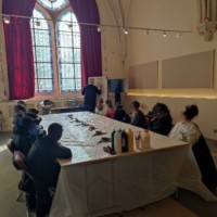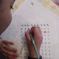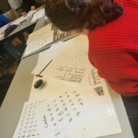 Les seigneurs ont également participé à un atelier afin de créer le blason de leur terre. Tandis qu’un autre groupe s’est transformé en moine copieur, rédigeant au scriptorium, à la lueur des « bougies », sur des parchemins muni de leur plume et de leur plus belle calligraphie.